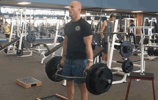 下背部形成自然拱形。当你弯曲手肘并抬起大臂时,爆发性的站起来,尽可能低把杠铃拉到高处。