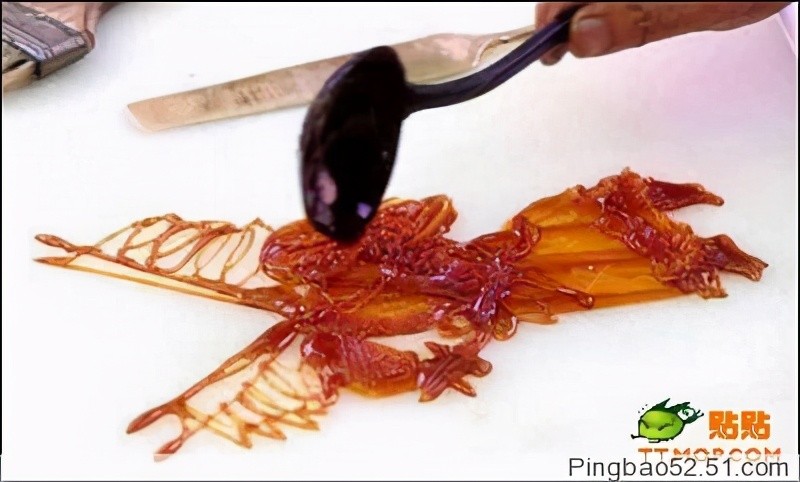 糖饼:那时候在学门口,总有卖瓜子和糖稀的老奶奶,记得两毛钱,给抓一大把,有一次我买一毛钱的,她考虑好久才卖。糖料一般是红、白糖放在炉子上用文火熬制,熬到可以牵丝时即可。在画图时,由民间艺人用小汤勺舀起溶化了的糖汁,在石板上飞快地来回浇铸,画出造型,当造型完成后,随即用小铲刀将糖画铲起,粘上竹签。这样,就可以拿起来吃了。题材一般以生肖,花鸟为主。都是很吉祥的寓意哦,所以特别是在节气的时候,这可是很盛行的。价格一般在1-2元,现在公园里面还可以看得到。小时候最喜欢的就是逛公园,转糖饼了,1毛钱转1次,都知道很难转得到大龙,可是还是要花1-2元钱转个10-20次去试试运气。