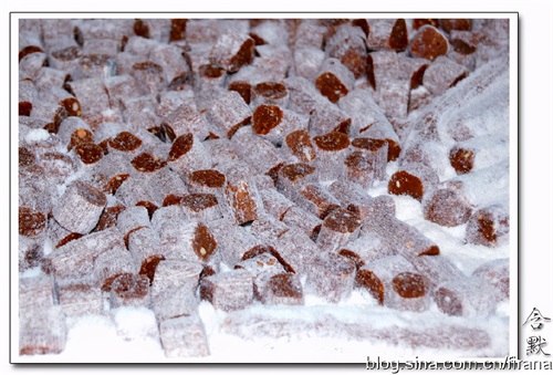 山楂片,20片用纸包成一小堆。我小时候最单纯爱着的零食,可是我常常是买不起的。)