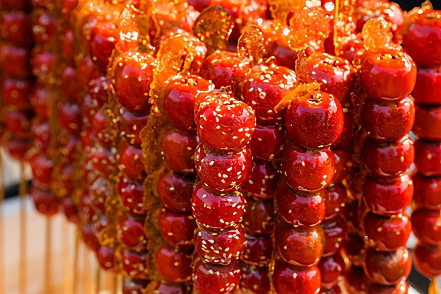 冰糖葫芦.每次回国都要吃的,虽然现在有很多不同水果做的,但是还是最喜欢山楂的!