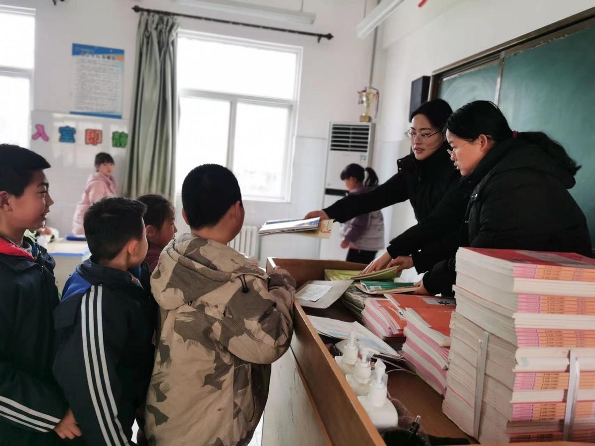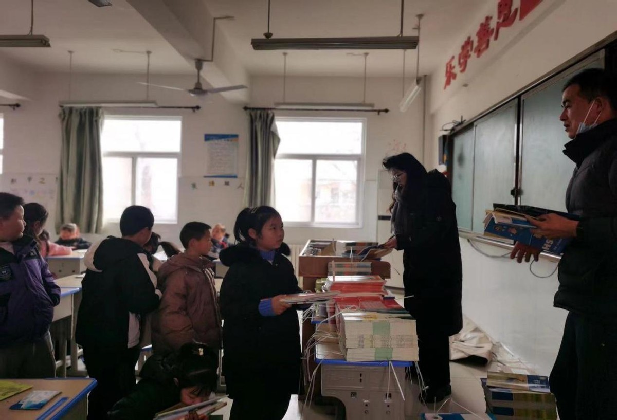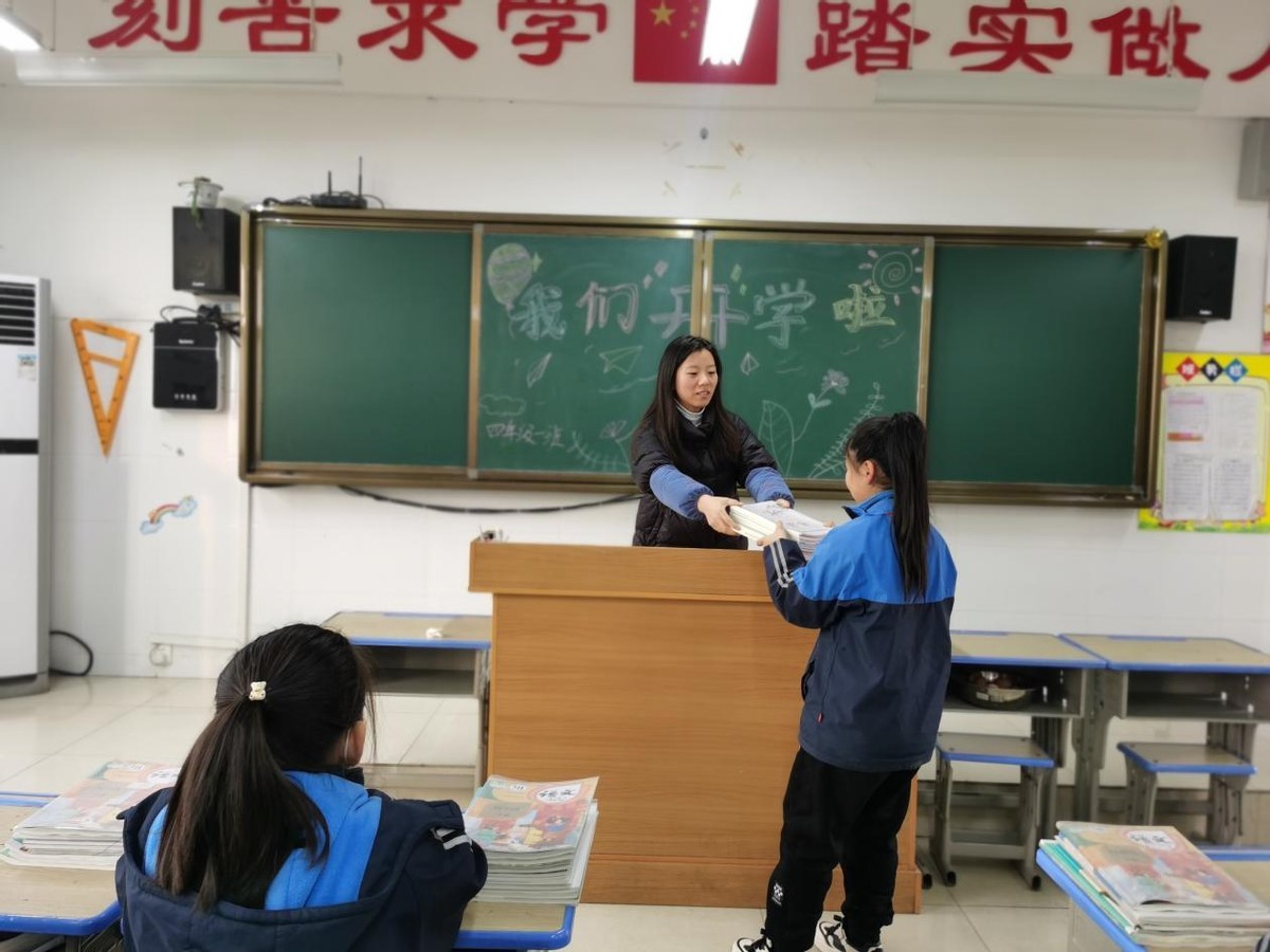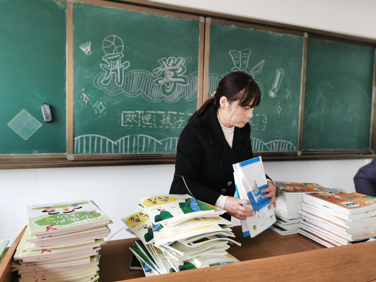 下午,学校组织老师投入到书籍拆包、分拣、摆放等琐碎工作中,随后各班主任老师有序组织,将书本发放到学生们手中,高效率的完成了教科书发放工作。