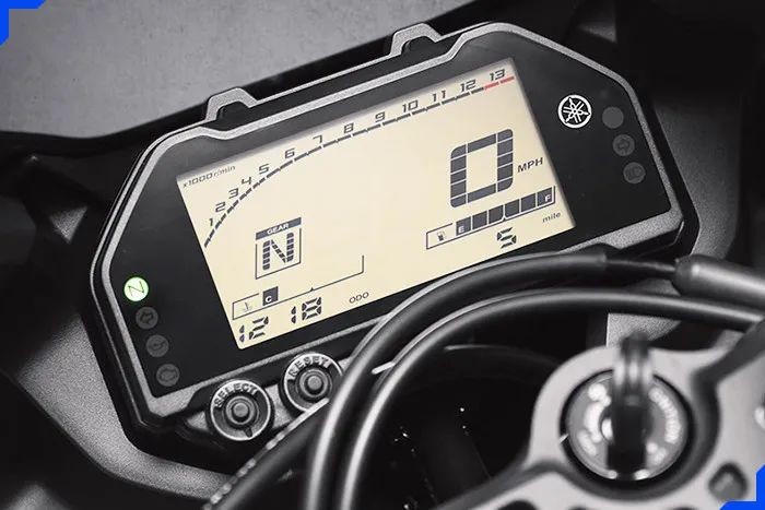 配置部分,R3采用了大尺寸单色全液晶仪表盘。前避震为不可调倒立前叉、后采用预载可调的Monoross中置后避震器。前刹配备298mm单浮动盘加上双活塞卡钳,后刹配备220mm单碟加上双活塞卡钳,标配双通道ABS;轮胎采用前110后140的17寸轮圈,配备邓禄普的SportMax GPR-300子午线轮胎。