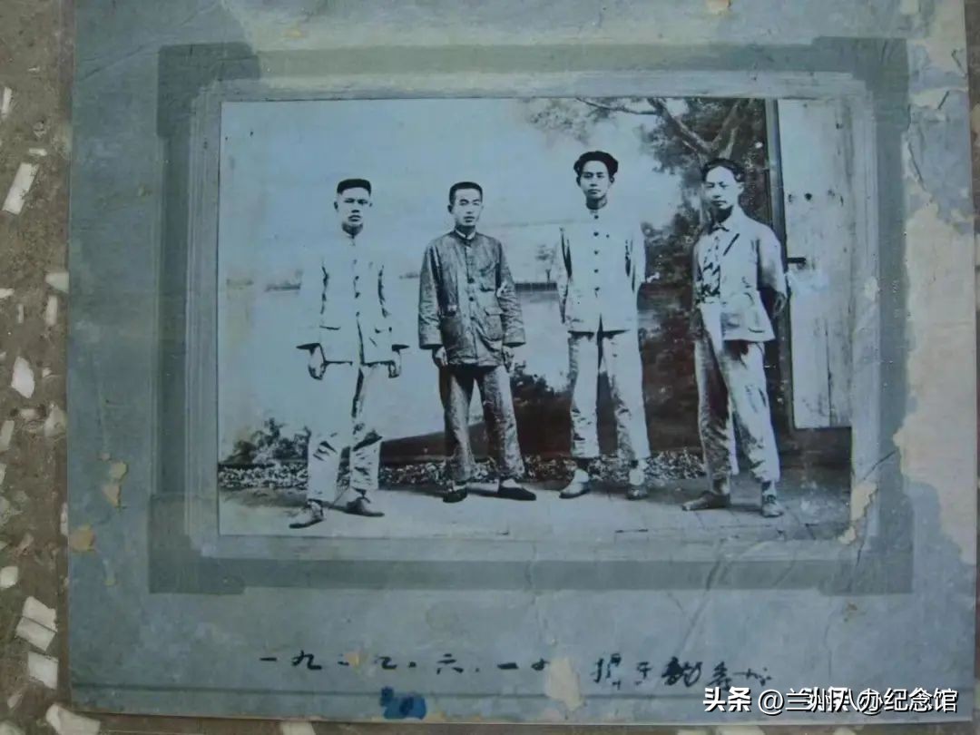 1929年6月19日于福建龙岩(从右至左):红四军政委部主任陈毅、红四军党代表毛泽东、红四军军部秘书谭政、红四军军部秘书朱良才。