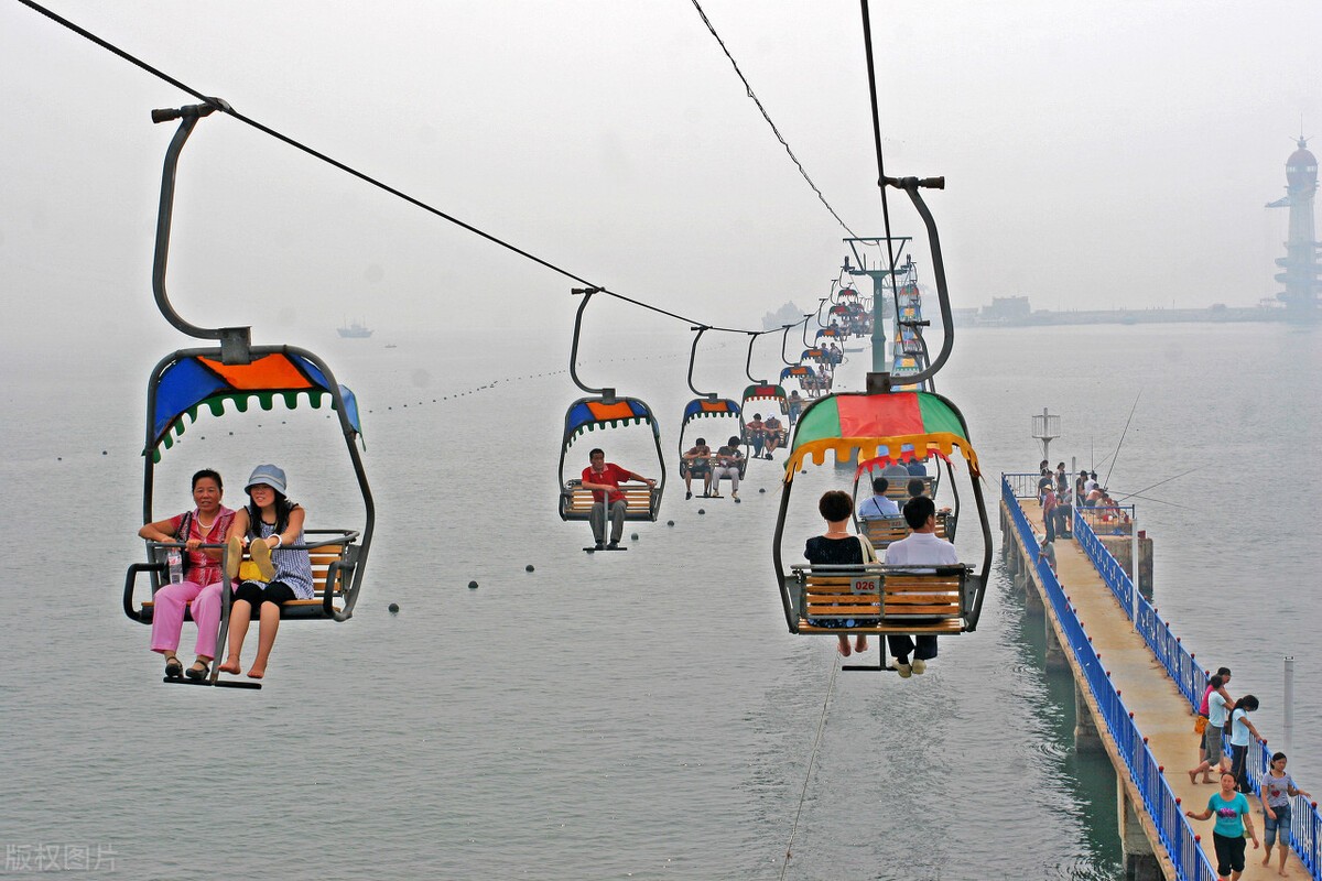12、仙螺岛:推荐指数:☆☆☆☆☆,曾在网上看到一组视频,感觉很有趣,一对情侣坐在开放式的缆车上,缆车缓缓向海中前行,感觉非常浪漫,后来来了北戴河才知道原来这就是仙螺岛。
