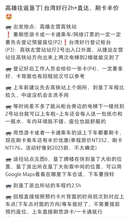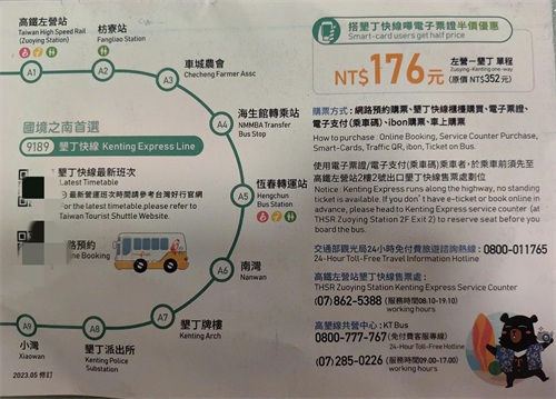 到站后我按从小红书上介绍的行动方案(完全正确),在站内排队刷一卡通购买了去垦丁的大巴车票,单程原价352元新台币,赶上有优惠活动,用一卡通半价支付176元新台币(加上返程,共节省352元新台币)。