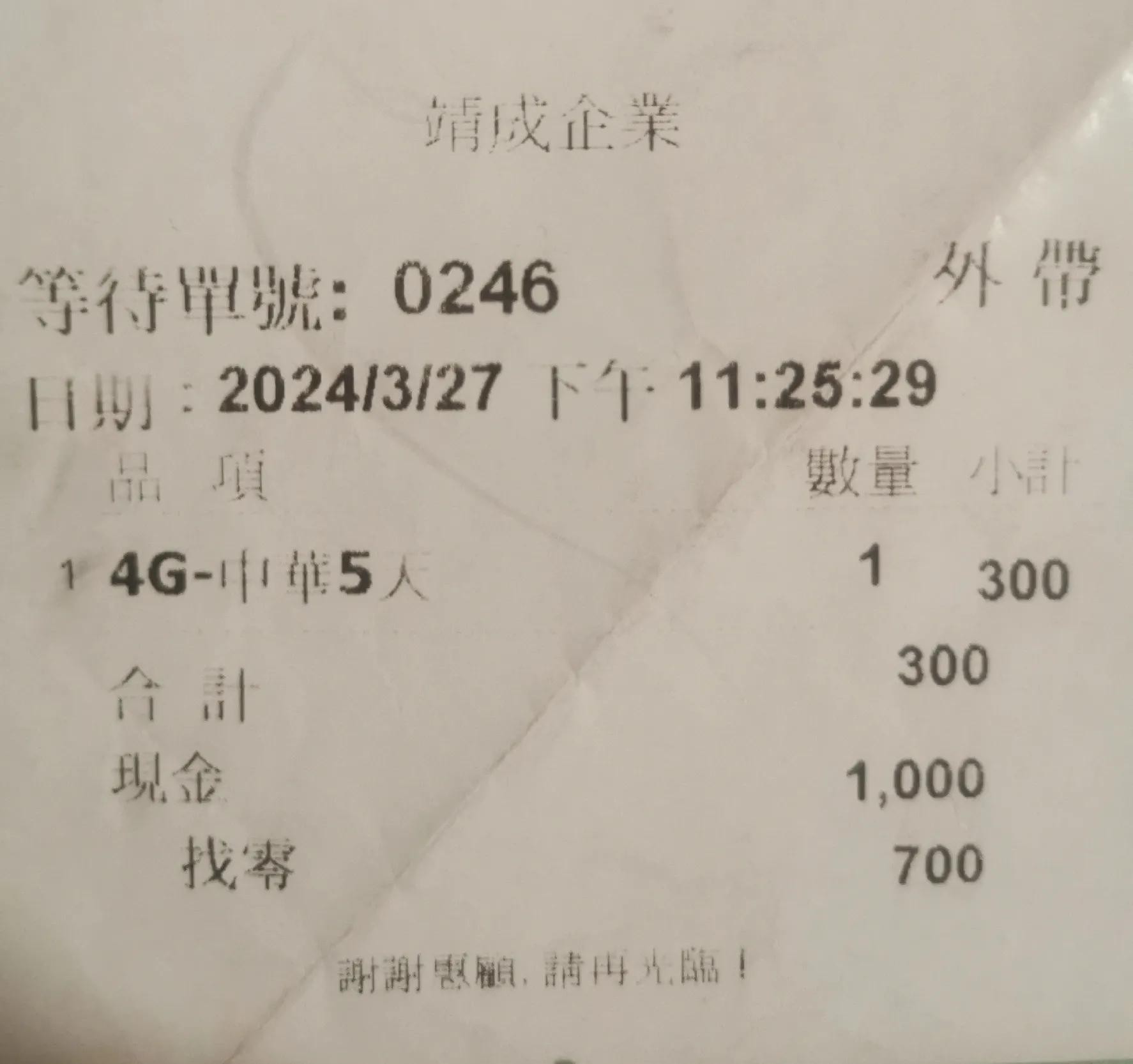 二是用标有银联标志的工商银行卡在ATM机上取了5张面值1000元的新台币(在台湾消费多数是用现金的);三是用刚取的现金花300元新台币购买了中华电信4G流量卡,5天期限实际可用6天(第一天免费),无限流量,可通话10分钟。工作人员动员我买7天的流量卡(500新台币)说我4月2日才离开在台湾停留7天,买5天的期满还得再买。我说再过半小时就是3月28号,到时我再插上卡在台湾就是6天,加上第一天使用免费买5天的正好(节省了200新台币)!