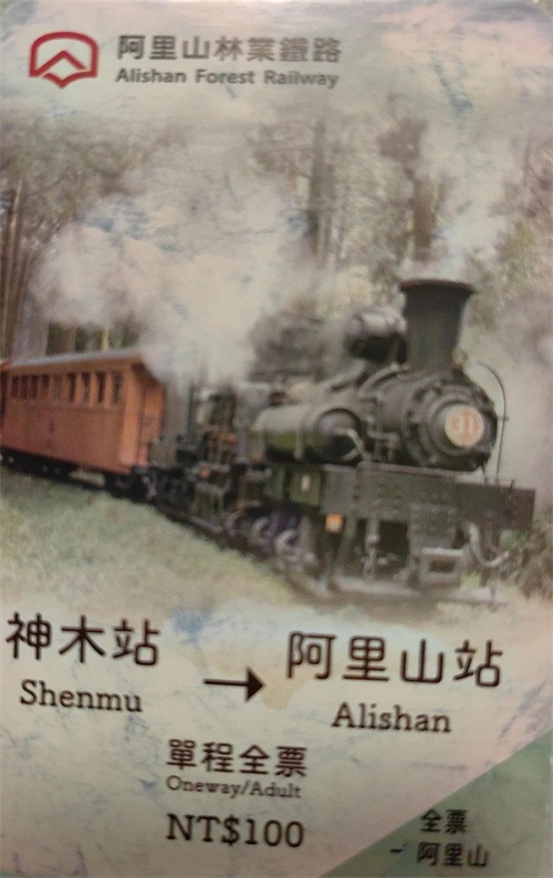本人乘坐阿里山神木站到阿里山站的小火车车票