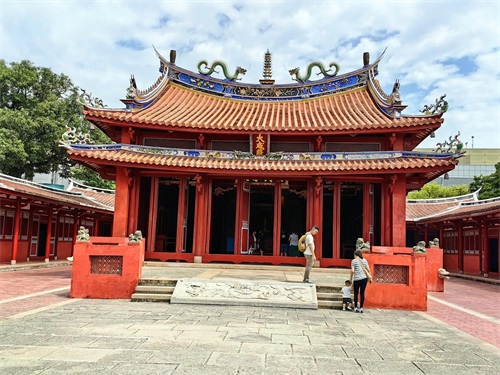 接着到孔庙参观。这是全台湾建成的第一座孔庙,也是郑成功收复台湾后在台湾建立的第一所高等学府。