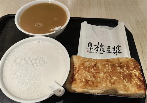 早上不到5点我就睡醒了。在小红书上查到附近有家网红饭店叫阜杭豆浆,早上5点30分营业。我立刻出门大约步行15分钟5点20分到达时门口已排起了队。