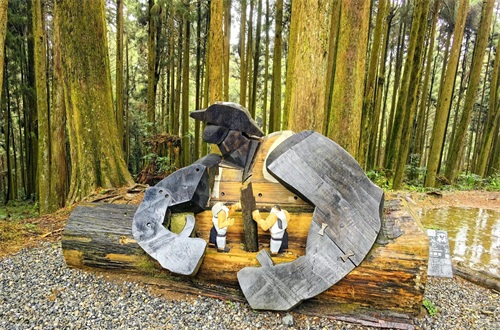 2024年4月1日,本人在阿里山小火车站拍摄的木雕。