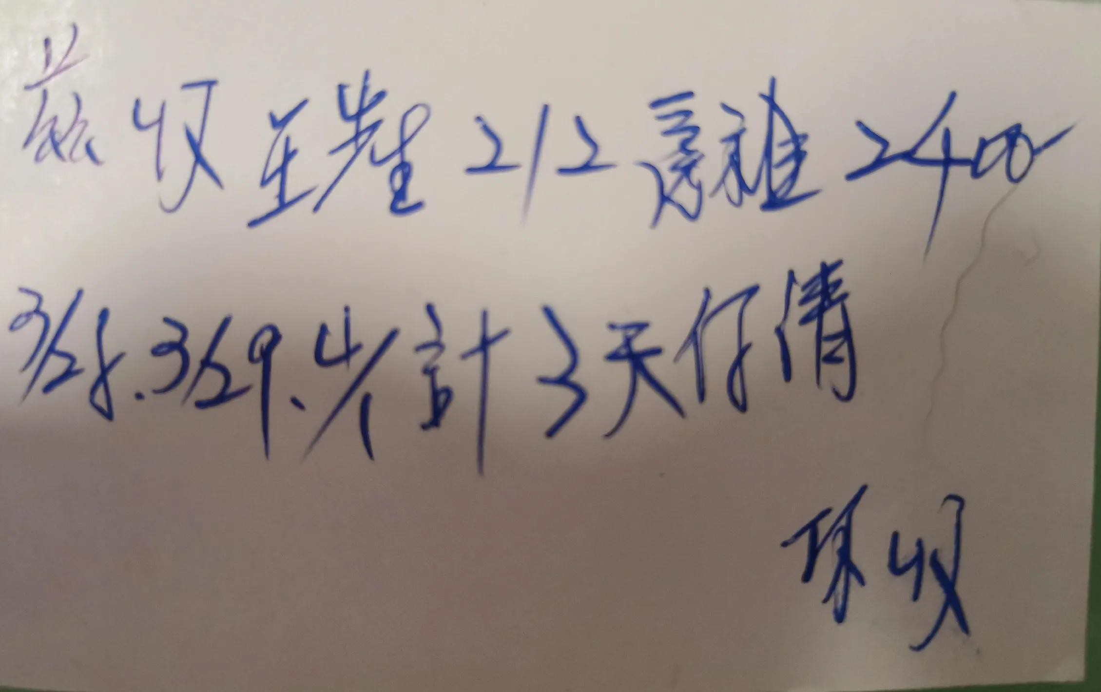 回福来宾馆后,同老板娘商量明天早上退房,先把大件行李寄存在这里,过两天后再来住一晚上并预付800元新台币(加上已住两天共支付2400元新台币)。老板娘同意并写下书面文字给我。