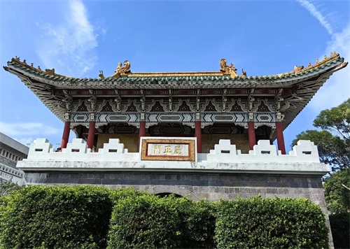 3月31日吃过早餐后退房,观看了附近的一个牌坊和停放着共享单车,拍照后我打车来到明延平郡王祠(郑成功庙)参观(免费)。