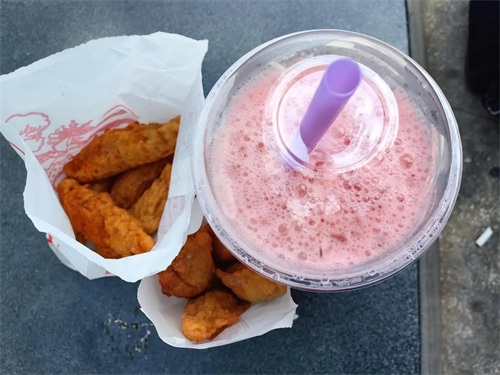 本人在小吃摊吃的旗鱼黑轮,喝的西瓜汁。