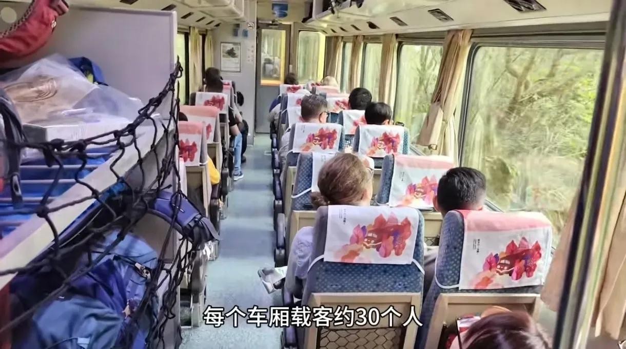 这趟小火车有5节车厢,内部互不通,每节车厢内有30个座位每排3个座。