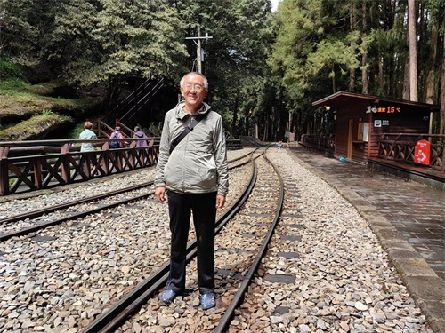 2024年4月1日,本人在阿里山神木小火车站拍照留念。