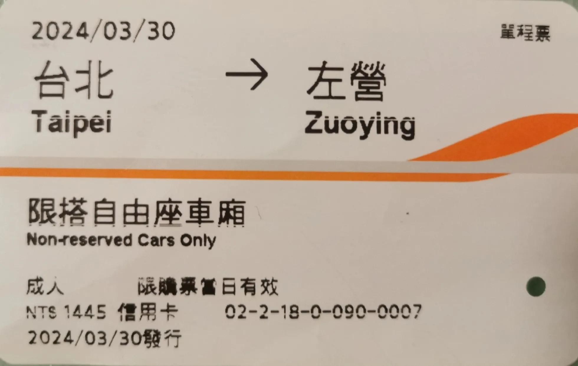 3月30日早上我赶到台北火车站,用信用卡花费1445元新台币,坐上6点半发往高雄左营的高铁,我买的是自由座车厢,车票没有座位号,但乘客都有座,高铁主要贯通台湾西岸,沿途经停台北板桥、桃园、新竹、台中、嘉义、台南,2小时后到达终点高雄左营站。
