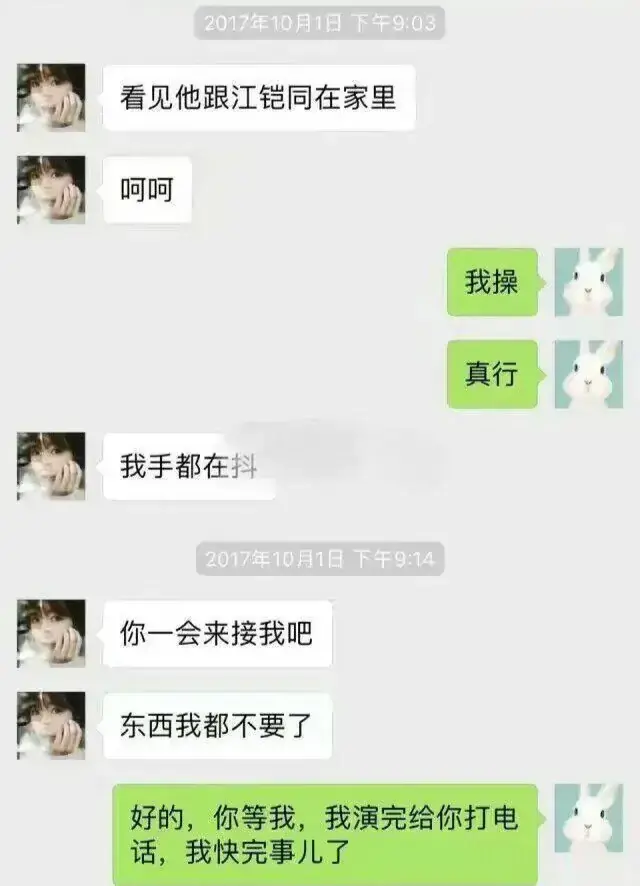 然而,2025年关晓彤拍戏回到跟陈翔同居的家,意外地撞见了陈翔光着上身和江铠同在家里的画面。据毛晓彤跟朋友聊天内容可见,关晓彤称当时手都在抖,可见受到了极大的震撼和创伤。但毛晓彤还真是一个内心坚强果断的女孩,她连夜搬离之前的爱巢。而四分钟后江铠同也乘电梯探头探脑地离开。其实个中关系之前流传于网上的视频已经讲述得清清楚楚。