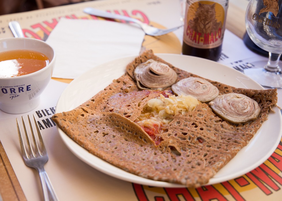 你是否知道加莱特饼(galette)的历史其实比可丽饼(crêpe)更长呢?这种咸味的饼最初也是在布列塔尼流行起来的,因为当地生长小麦对条件比较苛刻,所以用荞麦或黑麦代替。饼做好之后,一般会在里面加上一些格鲁耶尔碎干酪、火腿、鸡蛋和蘑菇等作为一道主菜。到巴黎之后适应了当地的吃法,人们渐渐也开始往里面加糖和面粉。