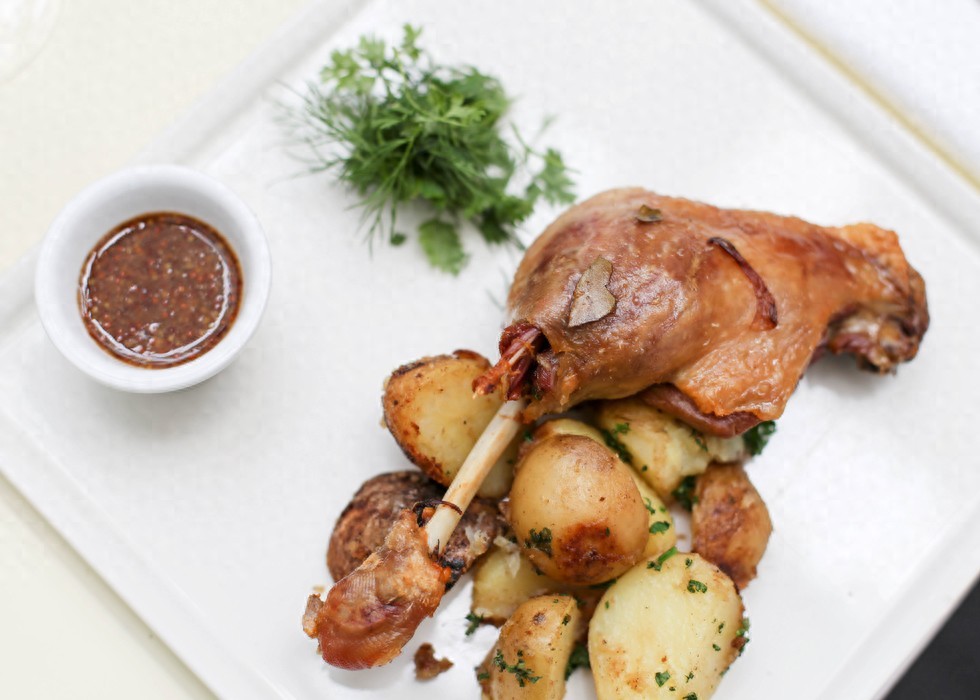 油封鸭是法国西南部的一道传统的菜肴。它是用肥鸭制作而成的,通过强饲法加肥,鸭胸和鸭肝都是如此。