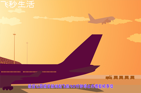 坐飞机时需要提前起身一个小时到达机场,航空公司规定航班起飞前30分钟停止办理登机手续,需要合理安排好自己的时间。
