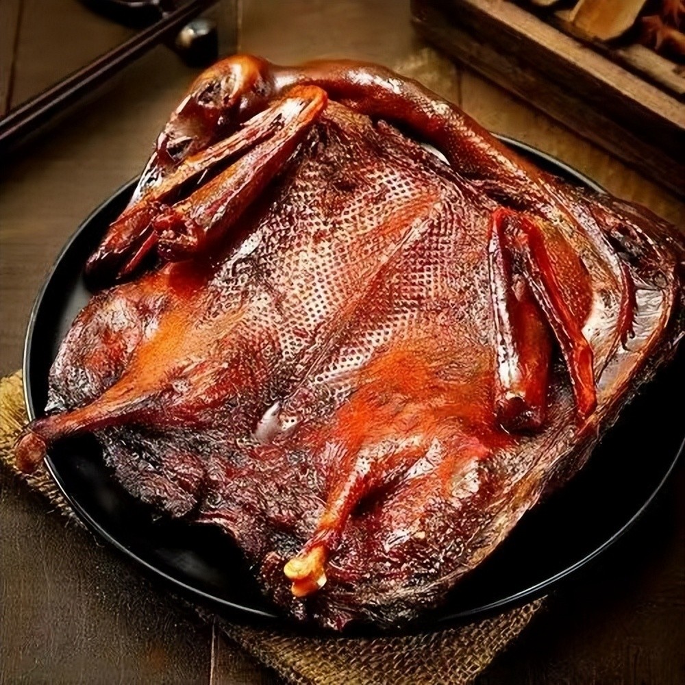这酱板鸭可是湖南的一绝名菜。它用中草药、香料、卤料一起熬制,然后风干,将处理好的鸭子修剪后烤制而成。其具有活血、顺气、养胃、美容之功效。酱板鸭皮肉酥香、色泽浓郁、麻辣有味,这十足的麻辣味让人吃到浑身直冒汗。