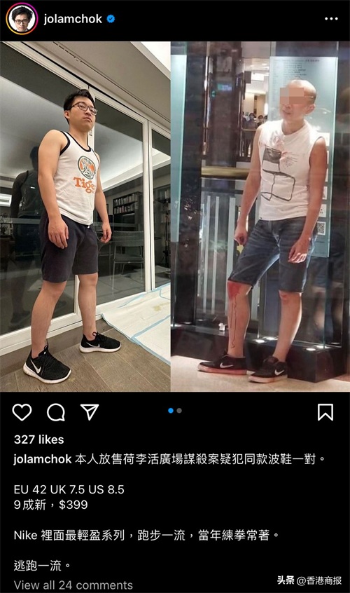 香港鑽石山荷里活廣場周五(2日)發生駭人命案,兩名女子被患有精神分裂症男子殺害,引發社會關注。自封「香港抽水王」的林作在社交平台「抽水」,分享一張模仿疑犯裝束的照片並留言:「放售荷里活廣場謀殺案疑犯同款波鞋一對」,標榜「9成新」、「逃跑一流」,結果遭網民聲討,並向林作任職的保誠香港作出投訴。今日(4日)其任職的保誠保險在發表聲明,已決定與有關理財顧問終止合約。