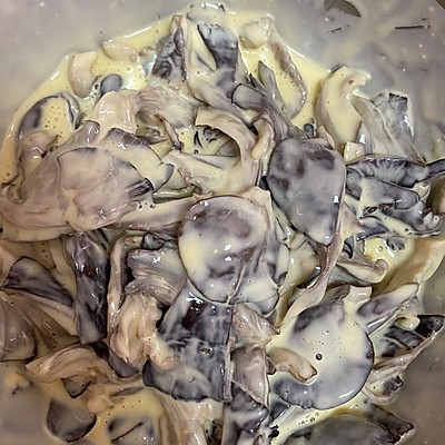 1、拌面糊:一半面粉➕一半玉米淀粉➕一勺胡椒粉➕一勺盐➕少量水➕鸡蛋两到三颗 搅拌至粘稠状 放入焯水后攥干水分的蘑菇拌匀