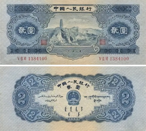 为改变第一套人民币面额过大,印制质量不足等问题,进一步健全中国货币制度,中国人民银行于1955年3月1日起发行第二套人民币,收回第一套人民币。第二套人民币和第一套人民币折合比率为:第二套人民币1元等于第一套人民币1万元。1964年5月15日停止收兑和流通使用。第二套人民币中“中国人民银行”行名由马文蔚书写。