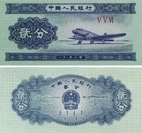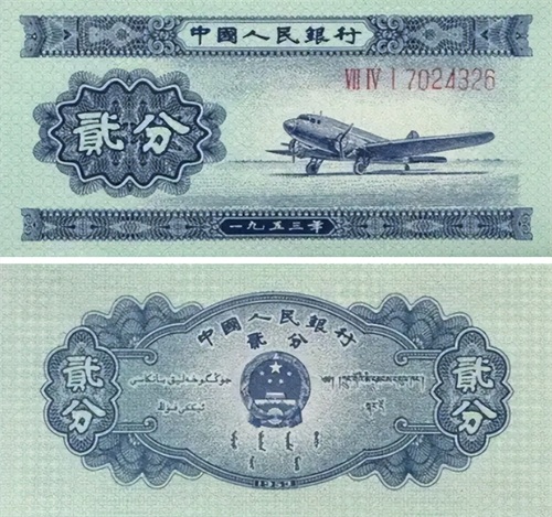 1953年贰分(短号1981年印刷) 飞机 95*45