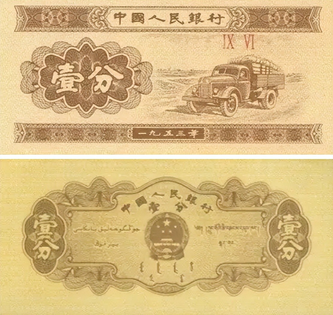1953年壹分(短号1981年印刷) 汽车 90*42.5