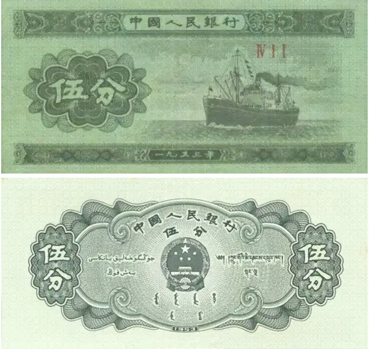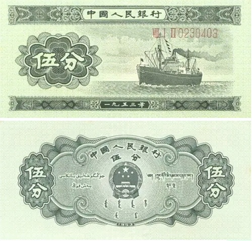 1953年伍分(短号1981年印刷) 轮船 100*47.5
