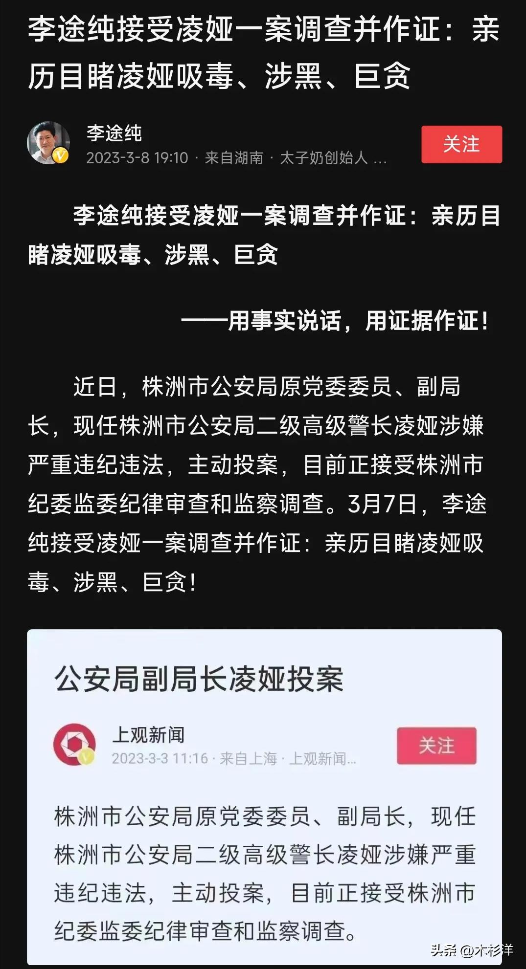 也许是知道事情瞒不住了,也许是知道形势不对,也许是背后的人不再保护她了,总之嚣张了这么多年的凌娅主动投案了。看到当年把自己害的这么惨的人终于落网,李途纯忍不住发文再次爆狠料。