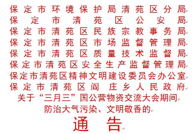 关于“三月三”国公营庙会,清苑区八部门联合发出《通告》