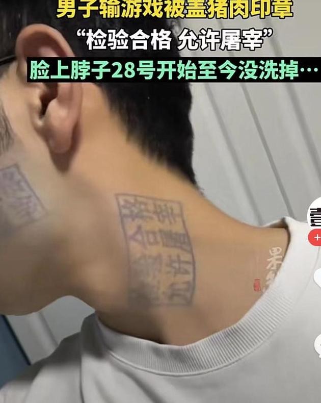 小张与几位兄弟好友聚会,结果在游戏中落败,就被朋友徐岩开玩笑般地在脖子与脸上盖上了猪肉检疫印章。本以为印章很快就能擦去,但数日过去,小张却怎么也无法将其清除,深感恼火无奈。此事引发广泛关注,网友们也纷纷发表自己的看法。