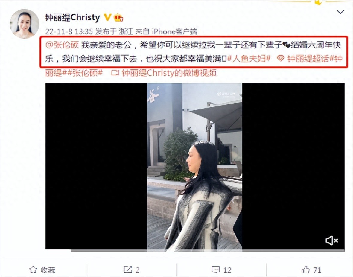 钟丽缇庆结婚纪念日,与张伦硕互相表白,结婚6年无儿女恩爱依旧