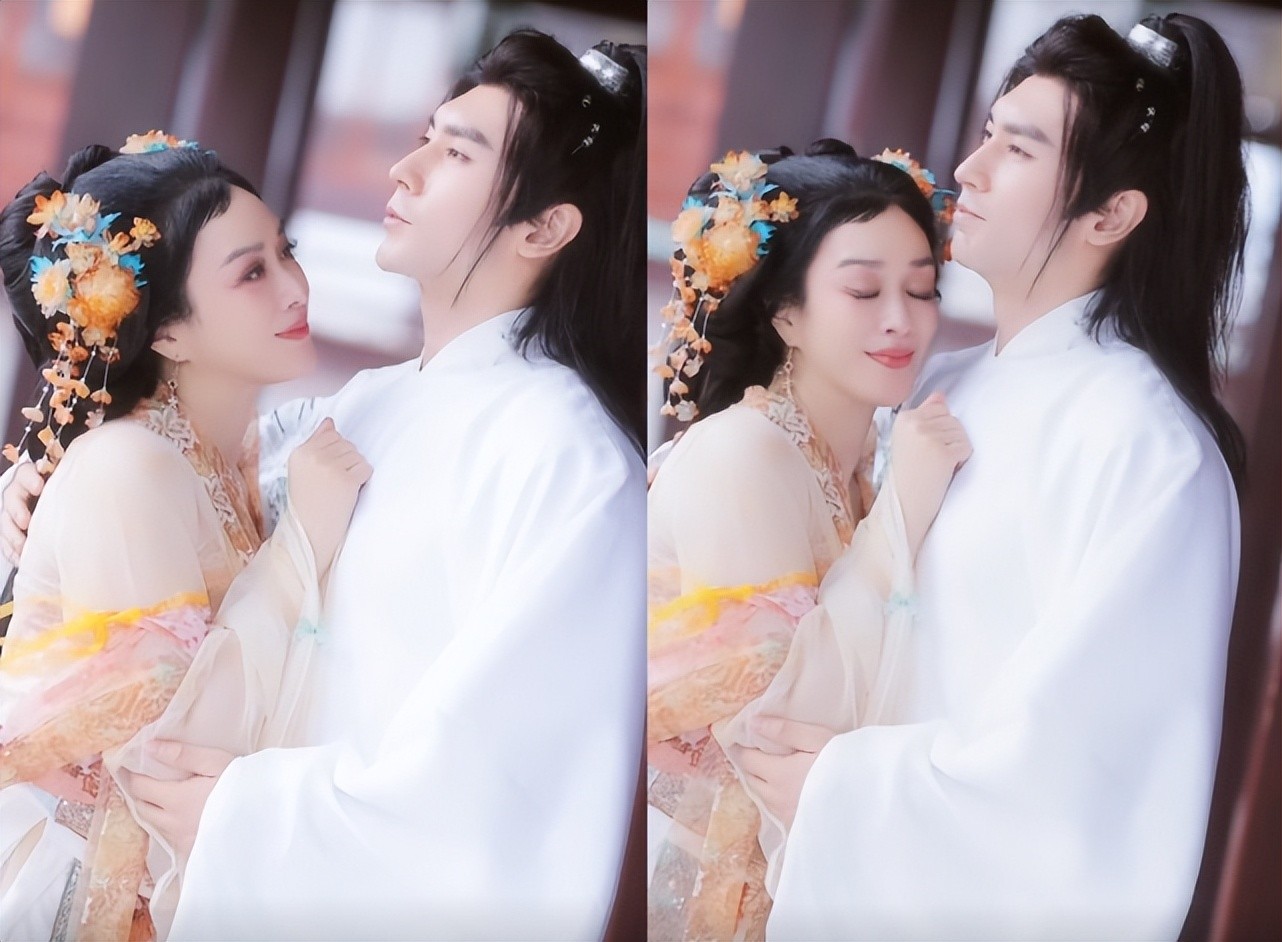 52岁的钟丽缇化着古装妆容,穿上清新靓丽的古装look,一颦一笑都充满魅力,迷人得不行。张伦硕一袭白衣古装同样是俊朗十足,夫妻二人相拥对视,一帅一美,的确太惹眼了。