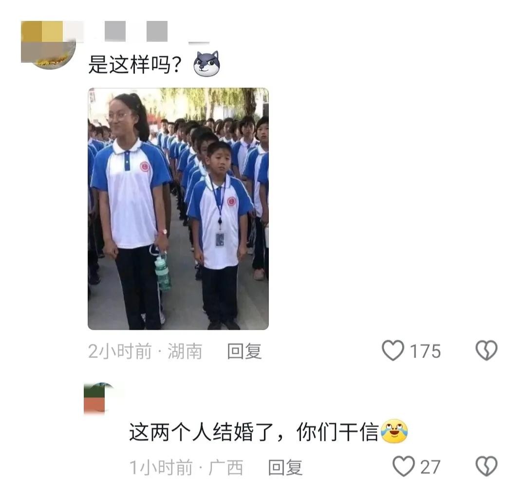 小学六年级放学,男女生身高差20cm,像家长领着孩子,评论区笑死