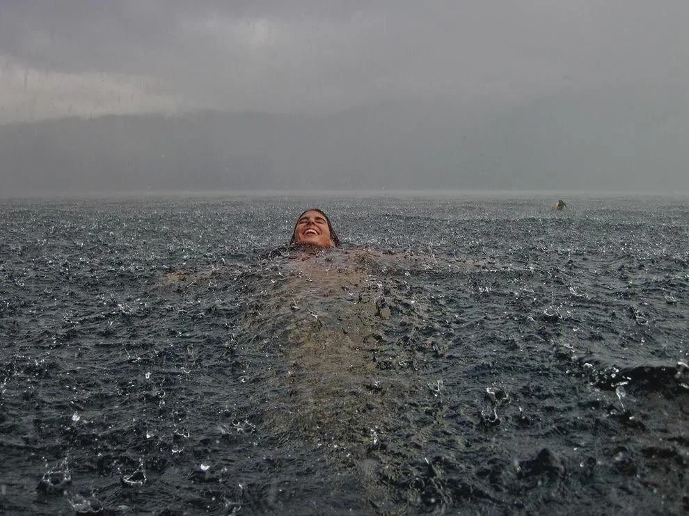 当广阔的海面上开始下雨时,人会失去与现实的联系。目之所及都是水,单调的雨声,会让人产生一种置身于模拟场景的感觉。