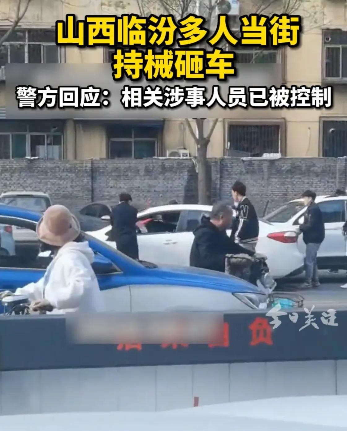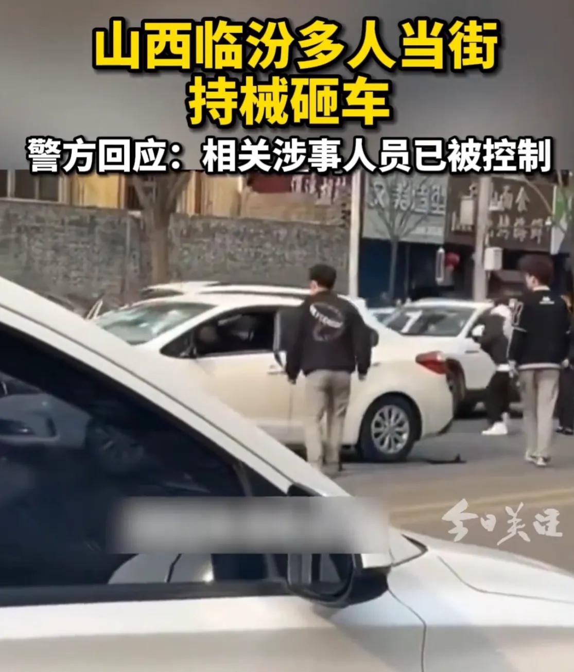 4月7日8点40分,山西临汾尧都区福利巷东段的街头,突然出现一群青年,他们手提器械,朝着一辆白色小汽车走过去,一群人当场用棍子暴砸车子,对里面的人员进行辱骂,光天化日之下,旁若无人,我行我素。白色汽车里的人,不敢出声。