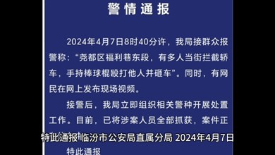 这是有人从高处拍摄的斗殴画面,大家看,这一群人足足有七八个人,拿着棍子砸并且拉拽,警方出了通报,正在紧张调查,会第一时间回复大家: