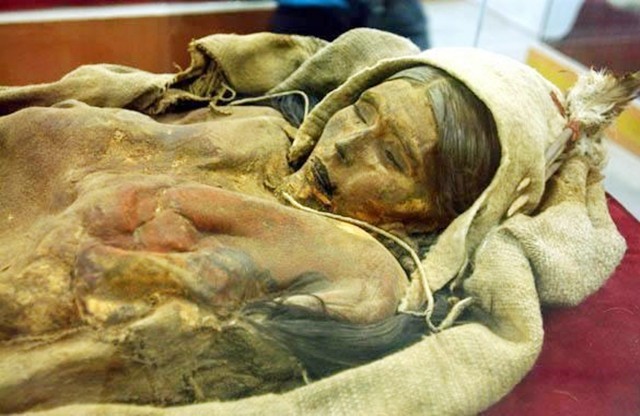 但关于尸体的身份却众说纷纭,由于她具有典型的欧罗巴人特征,又年代久远,考古学家无法辨别出她的来处。