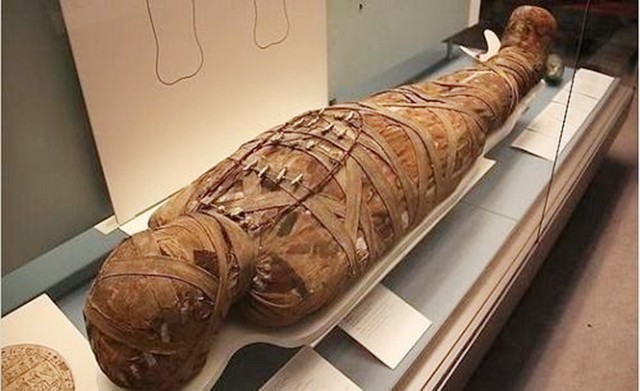 据知,埃及木乃伊的制作要经过一系列特殊处理:在迅速脱水去除内脏后,再用香料进行熏制防腐,最后用布条包裹严密,才能达到保存千年的目的。
