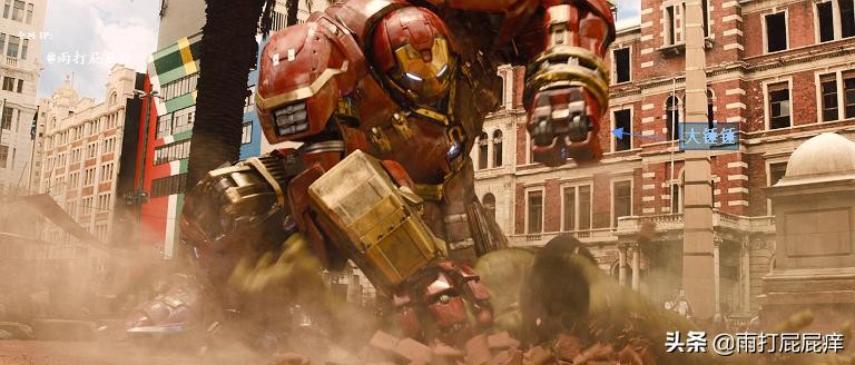 在《复仇者联盟2》中起初还能够和浩克旗鼓相当的发浩克装甲,但随着战斗的进行,浩克的怒气不断叠加,反浩克战甲便很快落入了下风,还差点因此而翻了车。