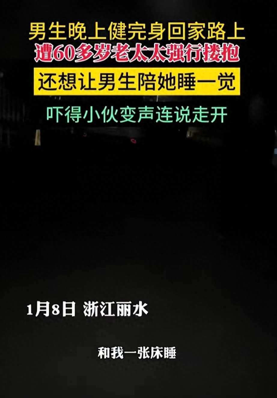 在浙江丽水的这个案例中,当事人为一位年轻小伙,他正在健完身回家的路上,却突然遭到了一位60多岁老太太的强行搂抱。更令人惊讶的是,老太太还提出无理的要求,要求小伙子上楼陪她睡觉。这种突如其来的遭遇,无疑给小伙子上了一堂深刻的教育课。