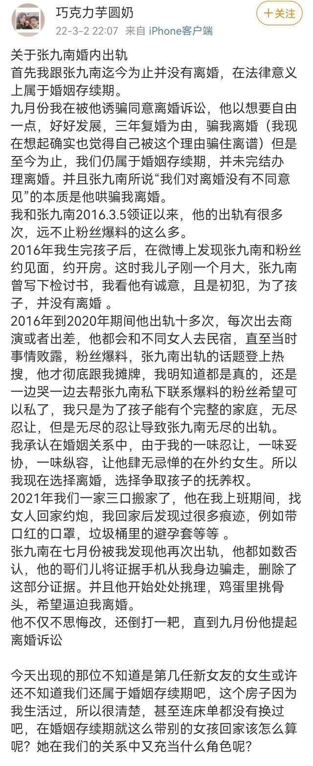 剧情大反转,张九南妻子出轨聊天记录曝光,张九南被戴绿帽!