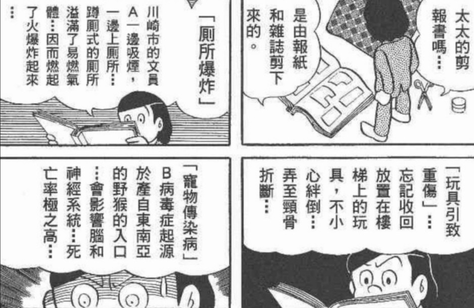 “川崎市的文员A一边吸烟一边上厕所引起厕所爆炸……”“踩到忘记收回玩具导致颈骨折断……”“B病毒起源于东南亚野猴,致死率极高……”