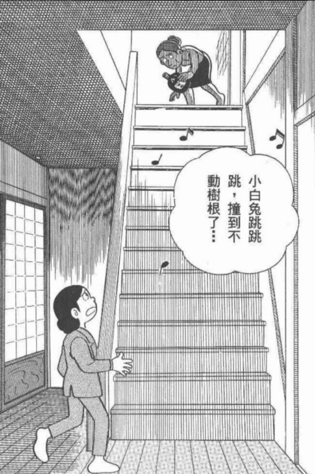 夜深了,漫画家终于拿起笔来,他想到一个好玩的故事,题目就叫“不动树根”,大概就是类似“守株待兔”的故事,还有一首童谣这么唱:“小白兔跳跳跳,撞倒不动树根了……”