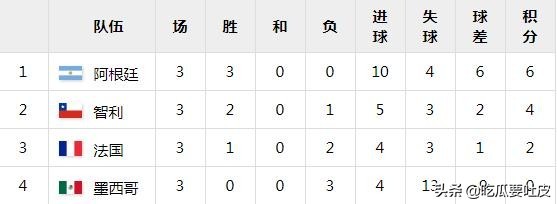 同样两战两胜,让阿根廷和智利的末轮小组赛成为了决定谁能出线的比赛。结果吉列尔莫·斯塔比莱梅开二度,帮助阿根廷3:1击败智利,顺利小组出线。