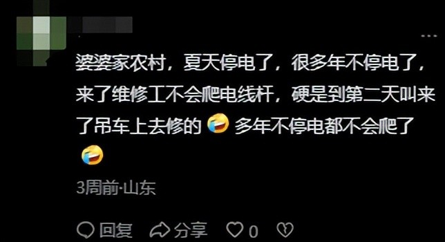 网友神评论:对对对对,我们这里山上基本上都有,一到下暴雨天,就开始停电,平均每次停三天,山上又没有人住