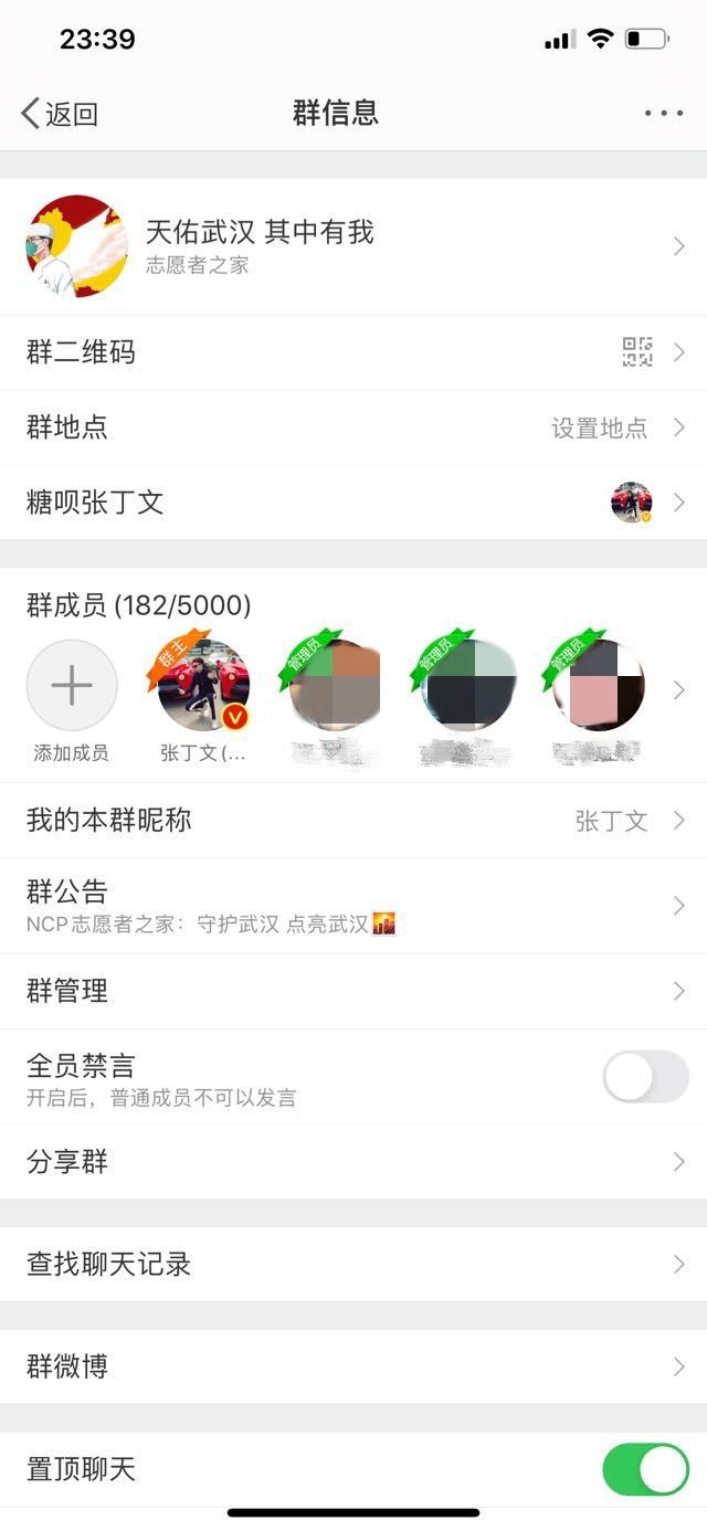 张丁文组建的志愿者QQ群“天佑武汉 其中有我”。受访者供图